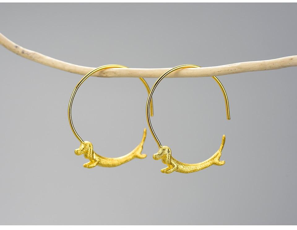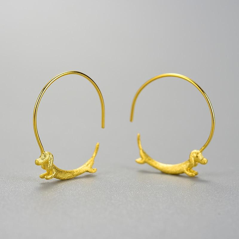 Aros de Pendiente Perrito Salchicha en Plata