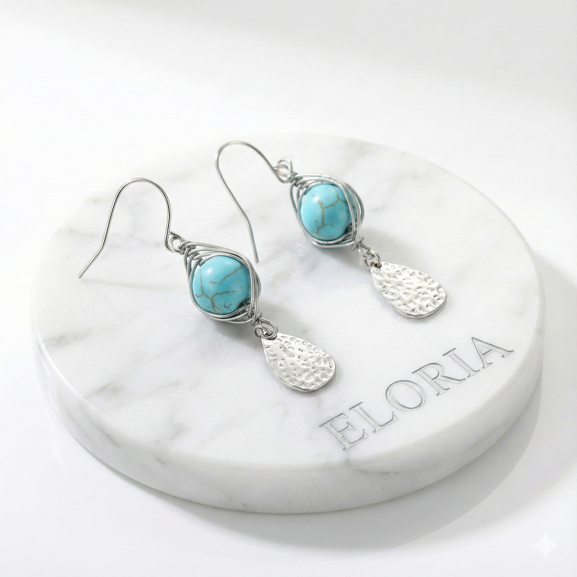 - Acabado (si se aprecia): Plateado con textura martillada en el colgante