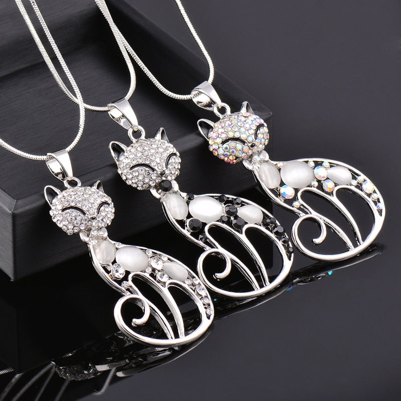 Collar Gatos del Amor en Plata y Circonitas Incrustadas