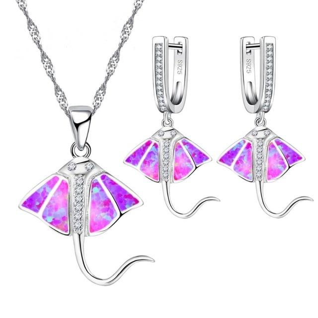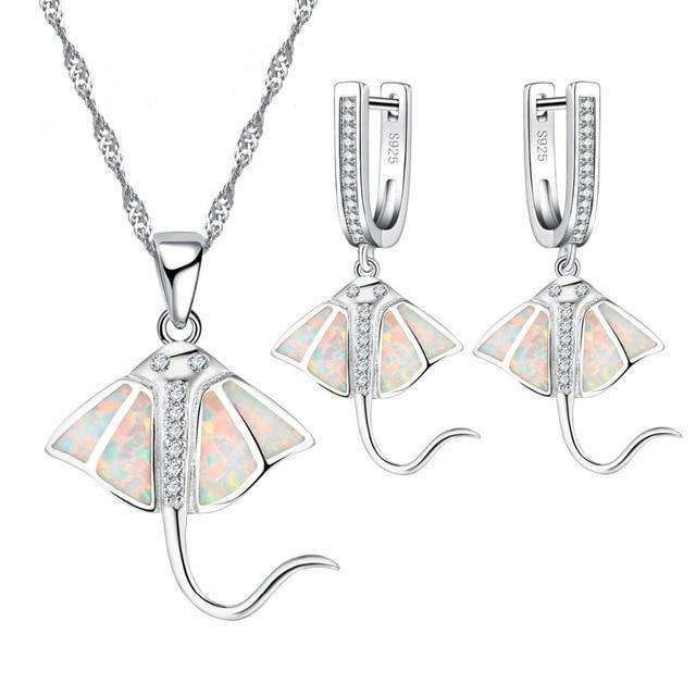 Conjunto Collar + Aretes Raya Marina en Ópalo y Plata